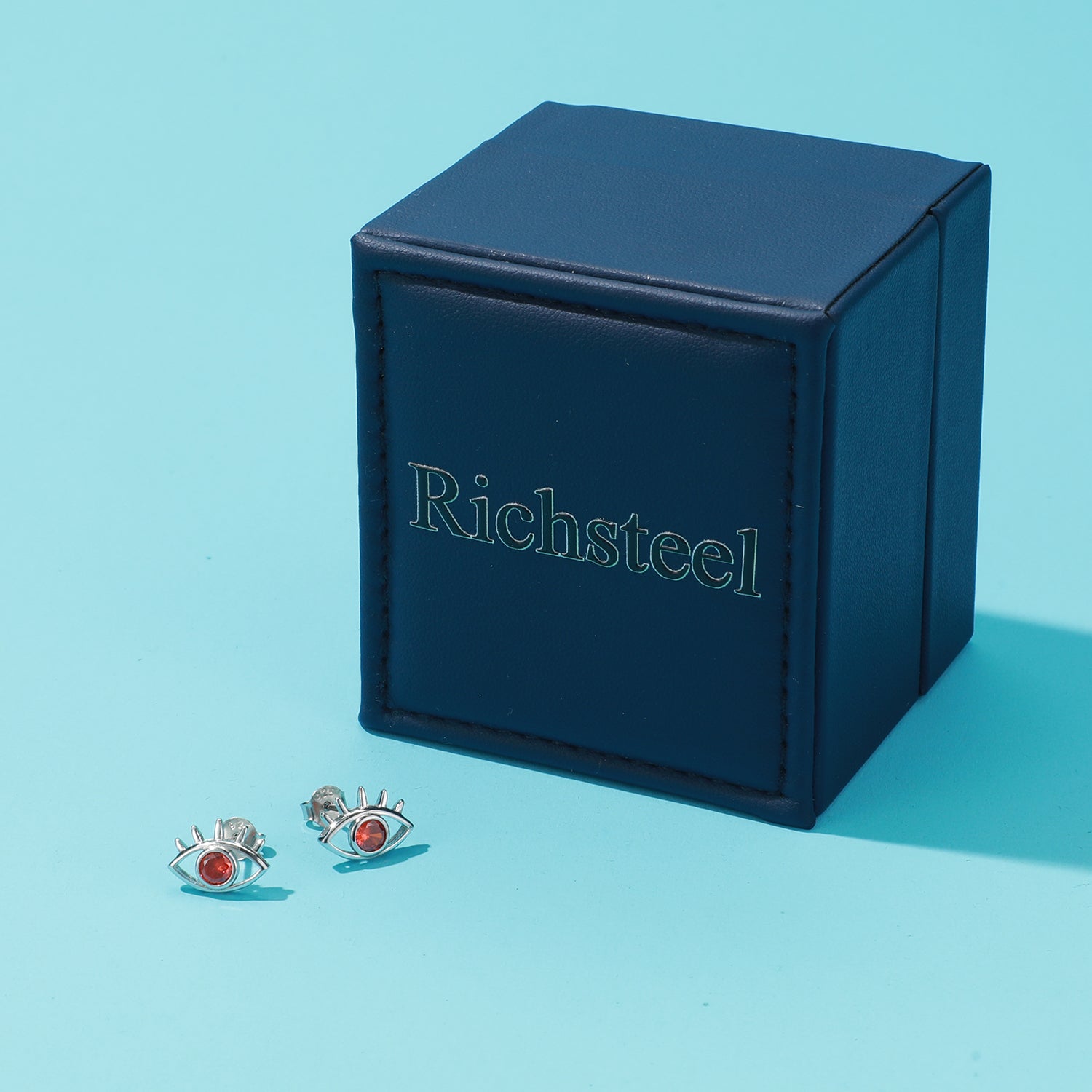 RichSteel Jewelry Evil Eye Stud Earrings with Birthstone in Sterling Silver